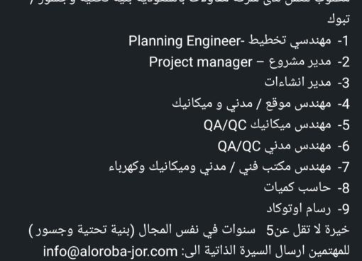 مطلوب للعمل لدى شركة مقاولات بالسعودية بنية تحتية و جسور مهندسين