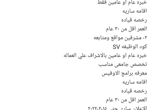 مطلوب لشركة مقاولات تعمل بالعقد الرياض