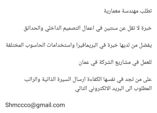 الرئيسية ⁄ واحة الوظائف ⁄ فرصة عمل بشركه معماريه في دولة قطر