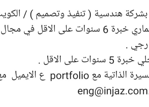 مطلوب للعمل بشركة هندسية تنفيذ و تصميم /الكويت