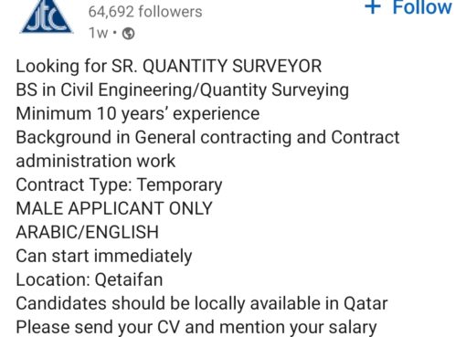 الرئيسية ⁄ واحة الوظائف ⁄ مطلوب مهندسة مدني حديثة تخرج للعمل بمشروع بالزرقاء