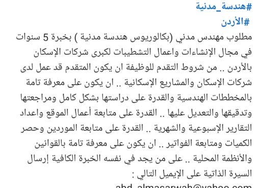 مطلوب مهندسون مدنيون – مطلوب لكبرى شركات المقاولات في المملكه العربية السعودية في ينبع