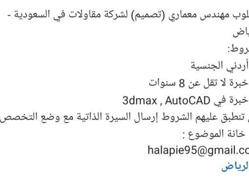 مطلوب عدد ٢ مساح محترف له سابق عمل في المكاتب الاستشارية في السعودية لا تقل عن سنتين قادر على التعامل مع جميع اجهزة المساحة للعمل بمدينة تبوك مكتب استشاري لديه رخصة قيادة سعودية