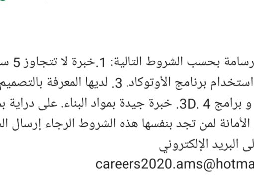 مطلوب مهندسين مدنيين – مطلوب مهندس مدني او معماري بخبرة لا تتجاوز ٣ سنوات
