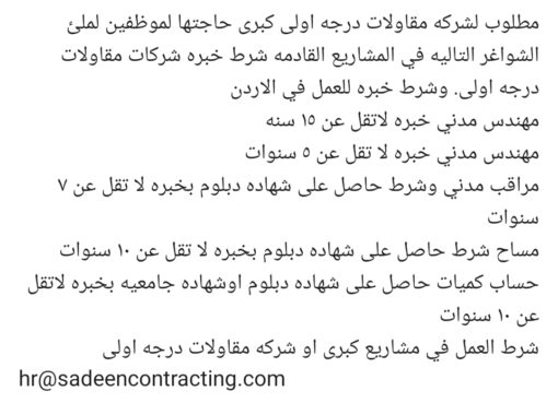 مطلوب لشركه مقاولات درجة اولى كبرى