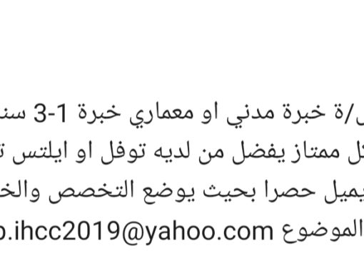 مهندس مدني او معماري لوظيفة مدير مشروع: