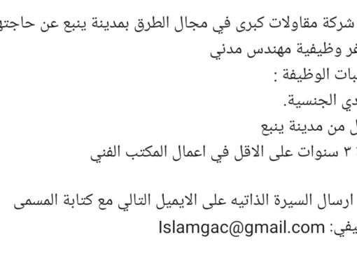 يرجى ممن يجد في نفسه الكفاءة ارسال السيرة الذاتية على الايميل التالي