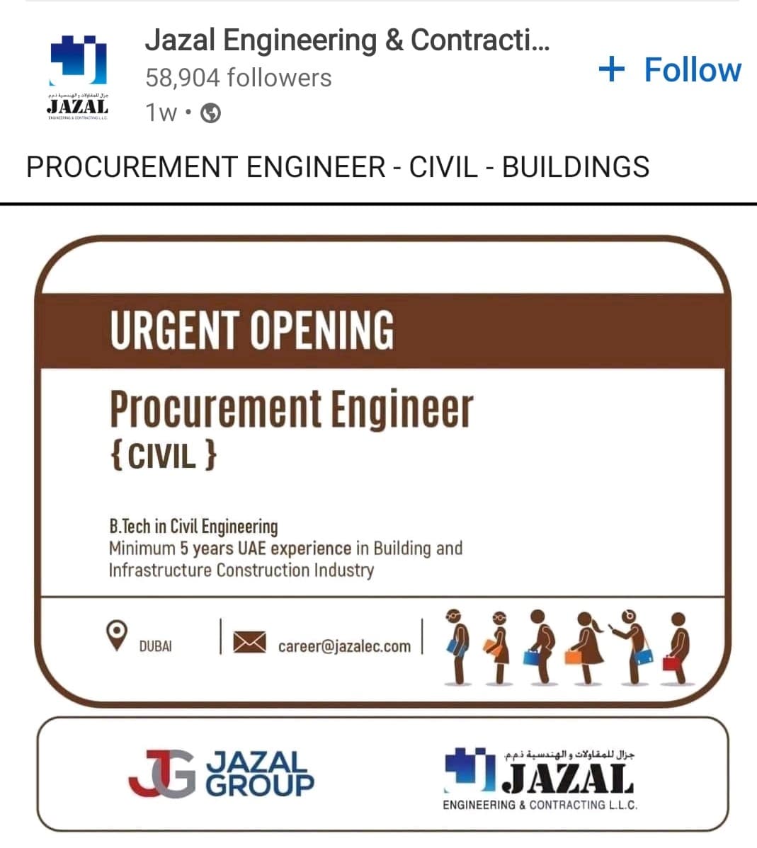 متابعة القراءةRequired Urgently for Ali Mousa& Sons Contracting: CIVIL QS Engineer Minimum 5 Years Experience MEP QS Engineering Minimum 5 Years Experience Please send CV to hr@alimousa.ae